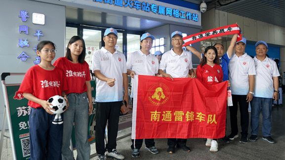 志愿行动,温暖球迷。活动当天,南通雷锋车队的数十名志愿者早早集结,赴南通站主要交通枢纽球迷聚集区,为球迷提供免费接送服务。车队统一张贴“南通雷锋车队”队标和“苏超球迷免费接送车”标识,志愿者们身着统一服装,热情引导球迷上车,并为他们提供赛事信息和周边服务。一位来自淮安的球迷表示:“没想到南通还有这样的免费服务,志愿者们非常热情,让我们感受到了家的温暖。”