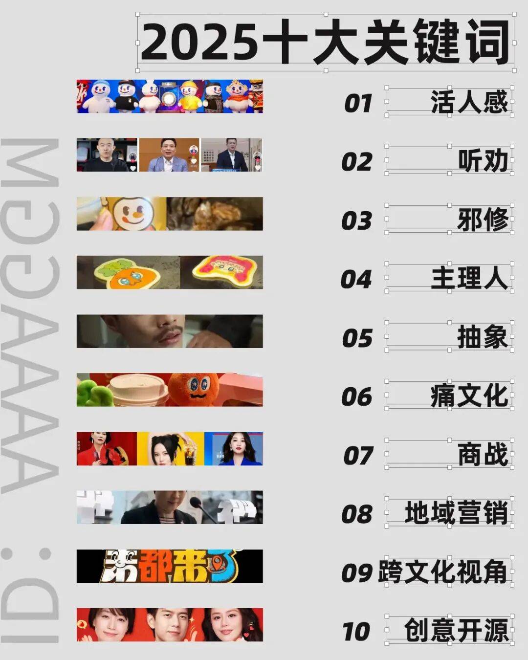 “抽象”一词几乎贯穿全年。从营销视角看,“抽象”的核心是用反逻辑、碎片化的符号与叙事,对抗信息过载与叙事疲劳。它让营销成为一场共创游戏,卖点的传递也因此从功能直述变为情绪与氛围的隐性植入。从中我们可以看到这样一种营销趋势:那就是未来的品牌营销,或许“意义”不再重要。最高明的沟通不在于解释“我是什么”,而在于创造一个能引发集体解读与传播的空白画布。