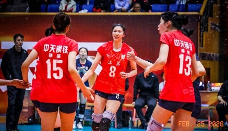 几乎在同一时间,D组的卫冕冠军江苏中天钢铁女排,也在主场常州大学体育馆迎来了“升班马”浙江西塘姚庄的挑战。 尽管缺少了龚翔宇、张常宁等功勋老将压阵,但这支以“全华班”出战的年轻江苏队,打得一点也不慌乱。 比赛的进程甚至比上海那场更加一边倒,江苏队以25比14、25比20和25比7直落三局,尤其是第三局,唐欣的一轮发球直接打出10比0的开局,彻底击溃了对手的抵抗。